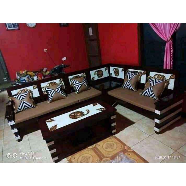Jual Sofa Kursi Bangku Ruang Tamu Kayu Dgn Meja Sudut Dan Meja Kerang Shopee Indonesia